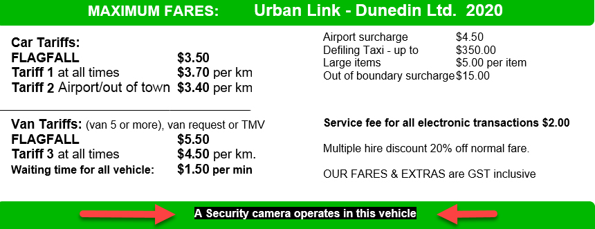 Maximum Fares Urban Link Dunedin Ltd 2020